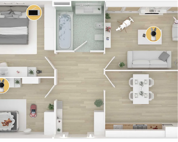 Behalten Sie beide Kinder gleichzeitig im Blick – mit zwei Live-Feeds auf einem geteilten Bildschirm, selbst in verschiedenen Räumen.