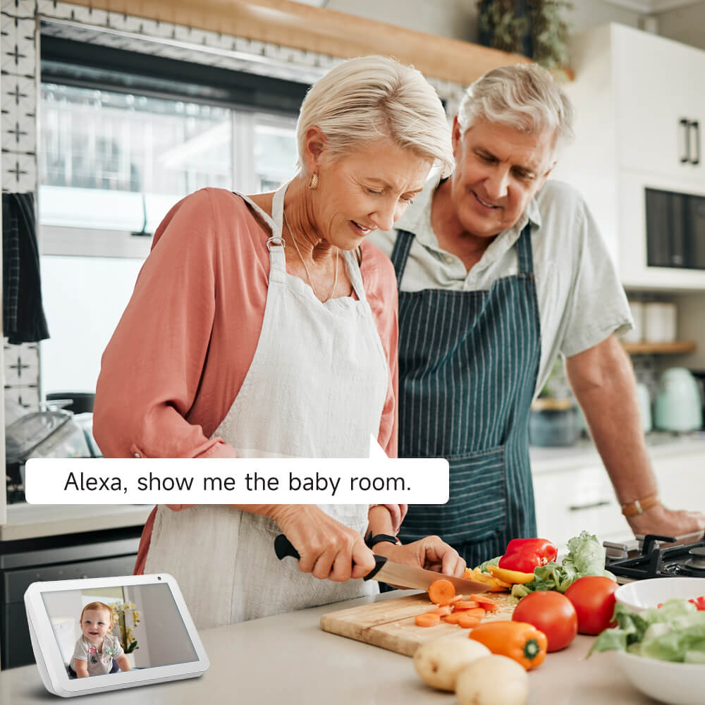 Verwenden Sie einfache Sprachbefehle, um Ihr Baby auf kompatiblen Geräten zu sehen – ideal, wenn Sie mehrere Aufgaben gleichzeitig erledigen müssen.