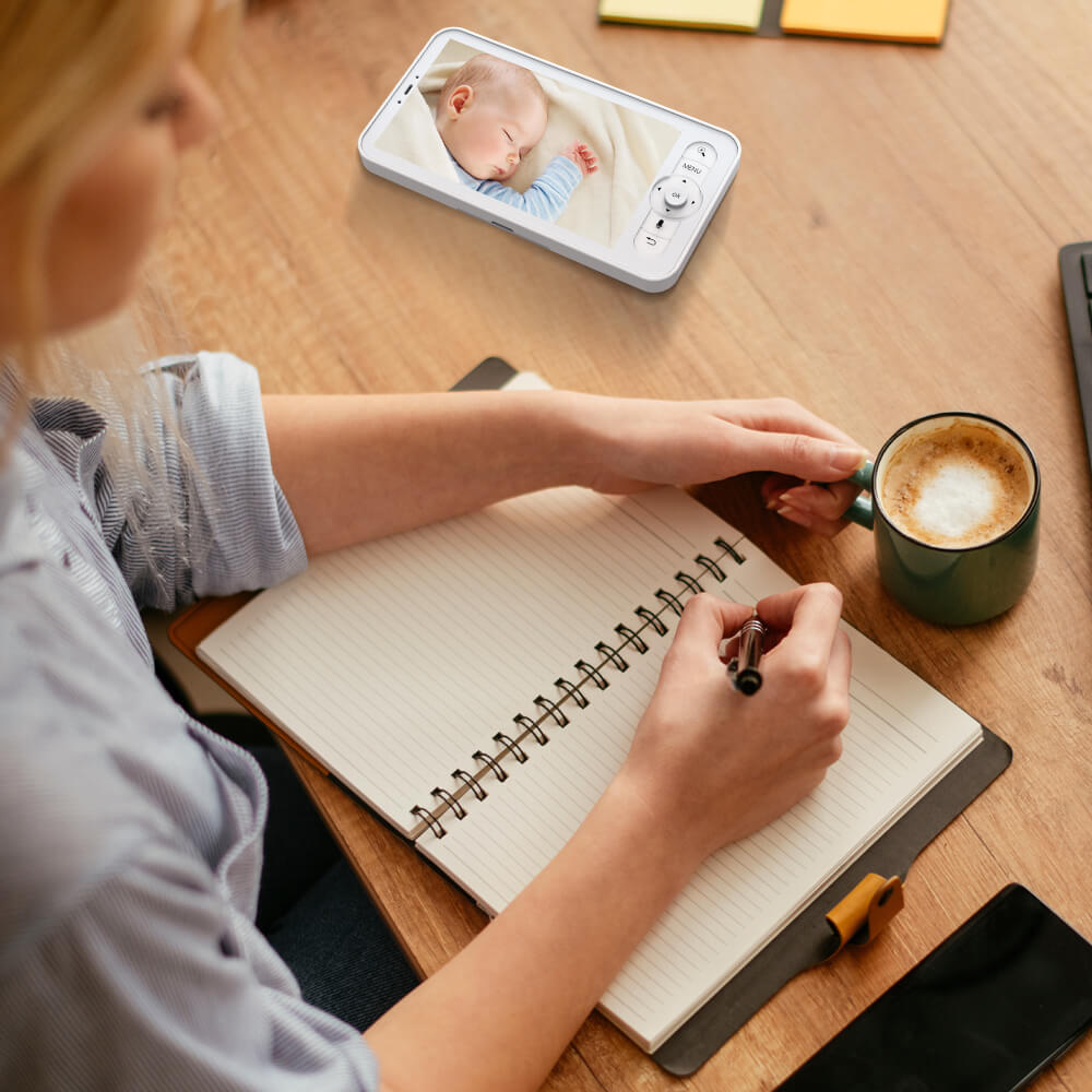 Bei Verwendung des Monitors: WLAN ist nicht erforderlich. Sie können die Aufnahmen direkt auf dem Bildschirm anzeigen, was eine privatere und sicherere Möglichkeit bietet, nach Ihrem Baby zu sehen – ganz ohne Internetverbindung.